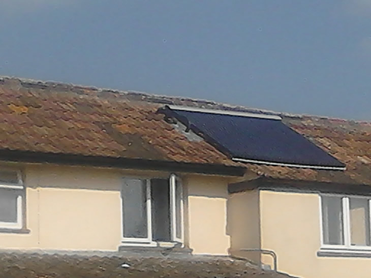 A top the cottage's roof a 30 x 58mm tube Navitron Solar Thermal Vacuum tube set was installed to complement the wood pellet boiler and reduce its running during the summer months.