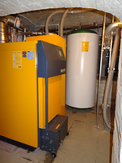 The ETA PE-K Wood Pellet 45kW Boiler we installed is a robust, long-life boiler suitable for heating larger buildings.